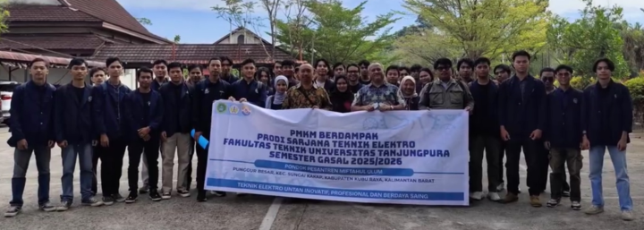 Universitas tidak hanya berperan sebagai pusat pengembangan ilmu pengetahuan, tetapi juga diharapkan menjadi motor perubahan sosial yang memberikan kontribusi nyata bagi masyarakat dalam bidang sosial, lingkungan, dan ekonomi (Kampus Berdampak). Dalam semangat tersebut, Program Studi (Prodi) S1 Teknik Elektro Fakultas Teknik Universitas Tanjungpura (JTE FT UNTAN) melaksanakan Program Pengabdian Mahasiswa Kepada Masyarakat (PMKM) Berdampak di Pondok Pesantren (PP) Miftahul Ulum, Punggur Besar, Kecamatan Sungai Kakap, Kabupaten Kubu Raya, Kalimantan Barat, pada Sabtu, 8 November 2025.