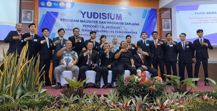 Jurusan Teknik Elektro Fakultas Teknik Universitas Tanjungpura (JTE FT UNTAN) pada Yudisium Periode I Tahun Akademik 2025/2026 (28 Oktober 2025) secara resmi meluluskan 31 mahasiswa program studi Sarjana dan 4 mahasiswa program studi Magister.
